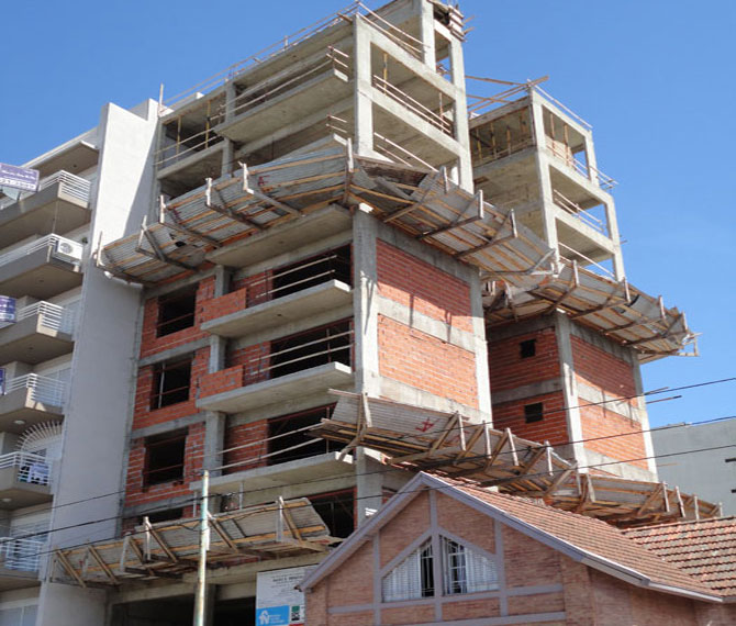 Edificio entre medianeras destinado a vivienda multifamiliar de planta baja y 9 pisos altos. Hormigón armado.